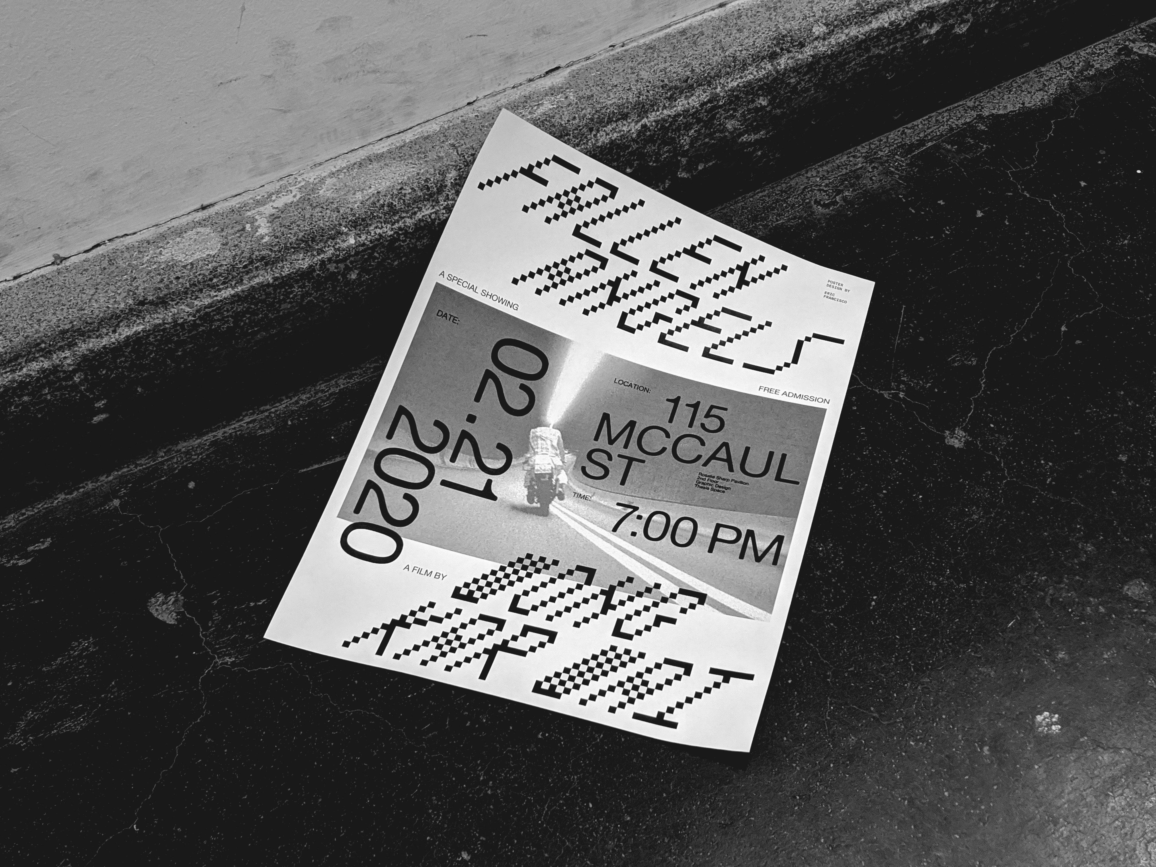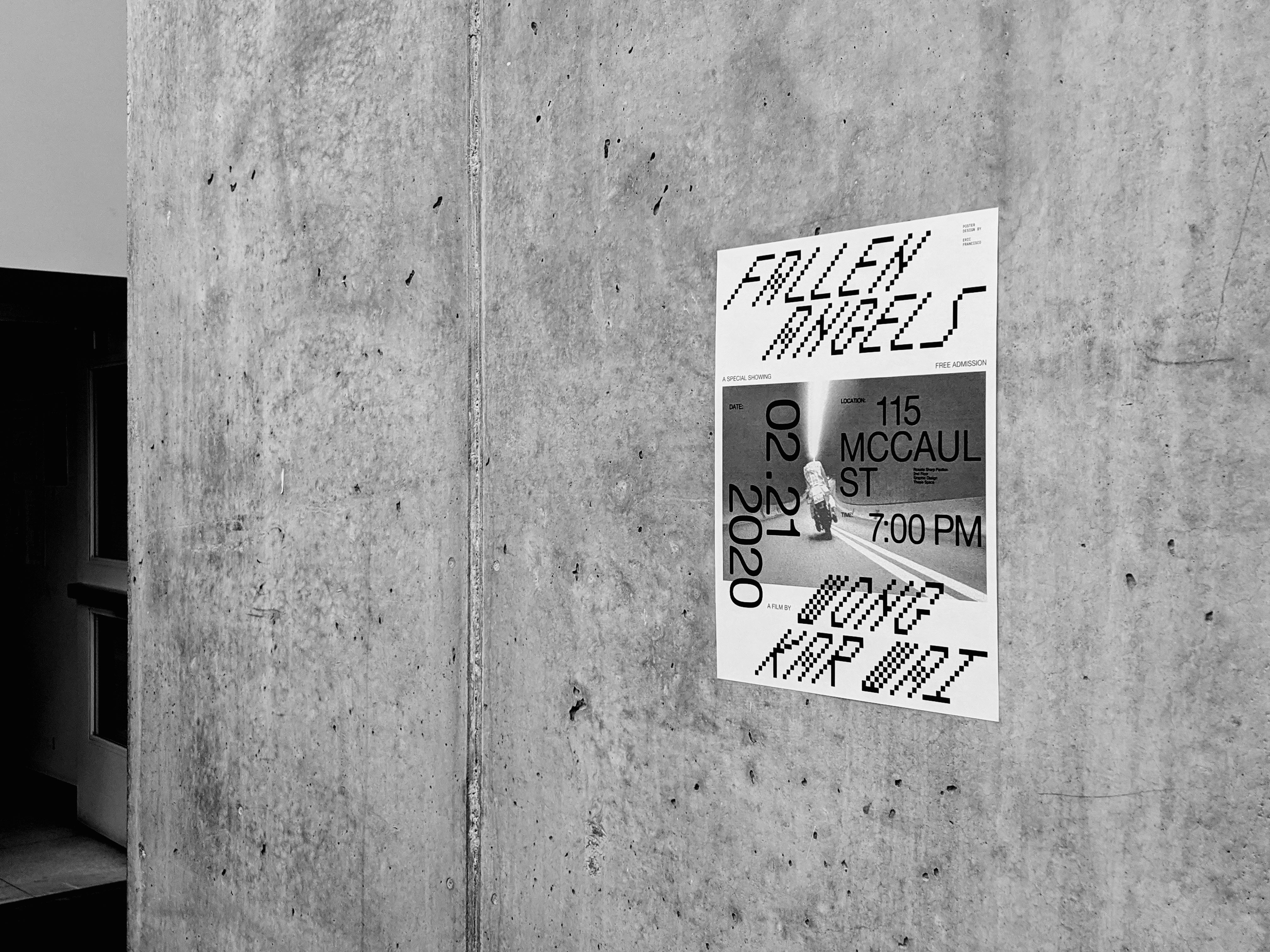 Poster for the special screening of Wong Kar Wai's Fallen Angels, part of OCAD University's film night at the Rosalie Sharp Pavillion.